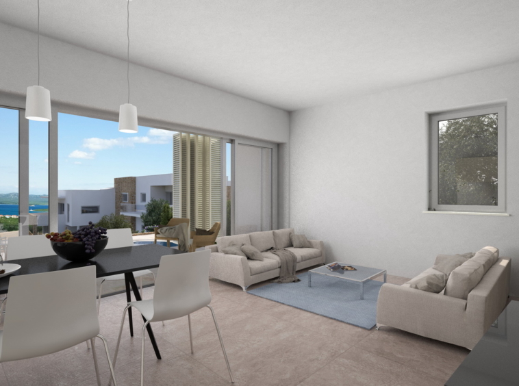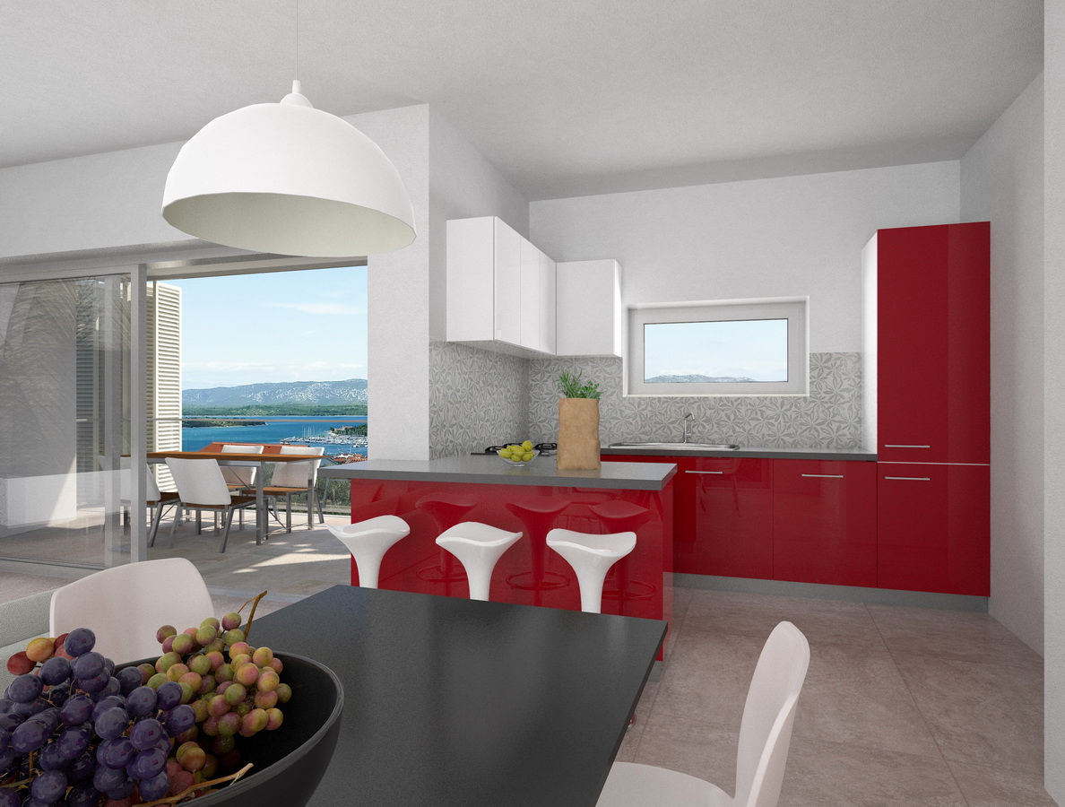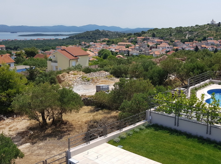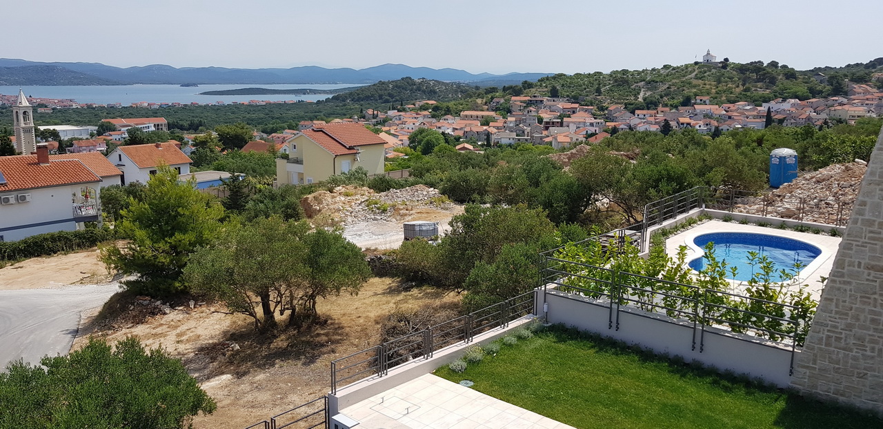 The villa has four apartments located on the island of Murter in the village of Murter, on the northern slopes of Raduč, overlooking the Kornati islands. The villa has four apartments of 71.75 m2 to 86.36 m2. Each apartment has two bedrooms, a spacious living room with dining area, a bathroom with a toilet and a large terrace. Each apartment has two parking spaces and cellar basements while the apartments on the ground floor have swimming pools of 24 m2 and 14 m2 and their own gardens. The price of individual flats ranges from 220,000 EUR to 245,000 EUR. The sea is less than 500 m away and the facility is close to all the necessary facilities.