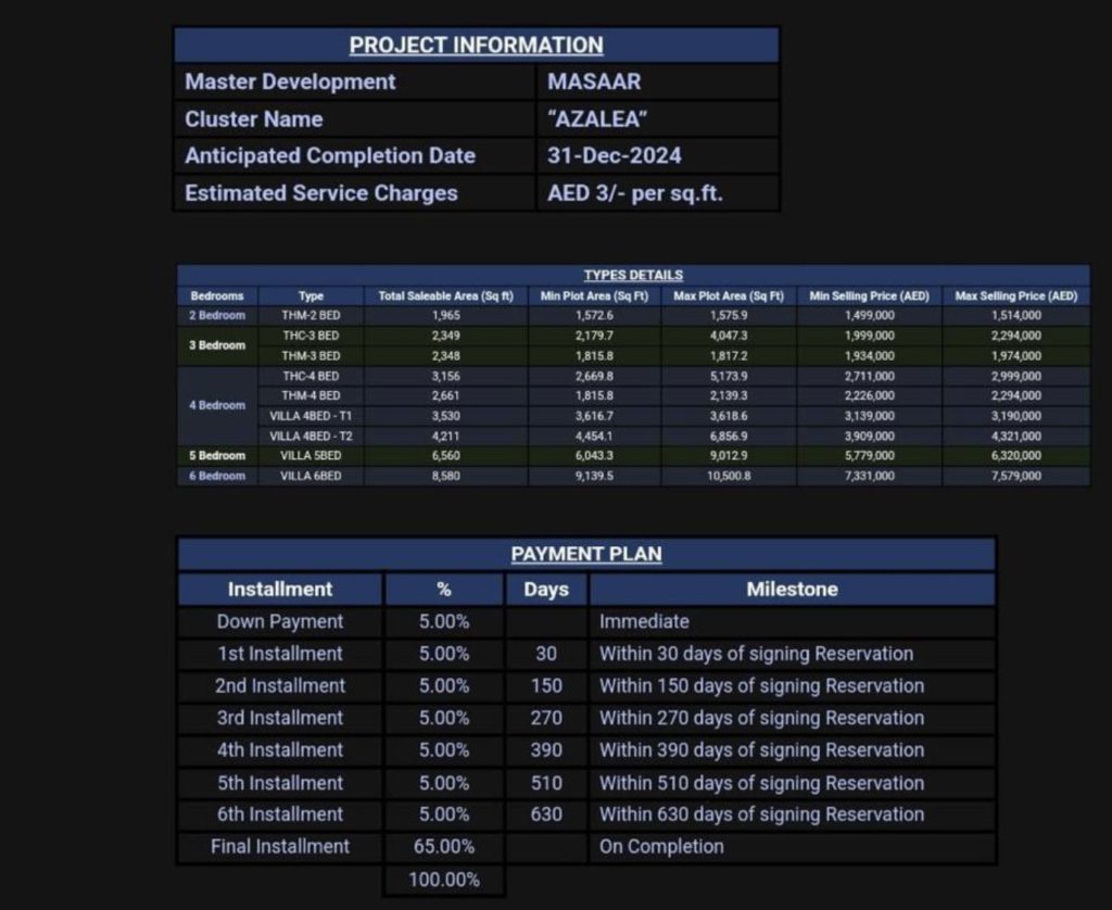 We would like to present to you 2BR-6BR townhouses by Azalea at Masaar.