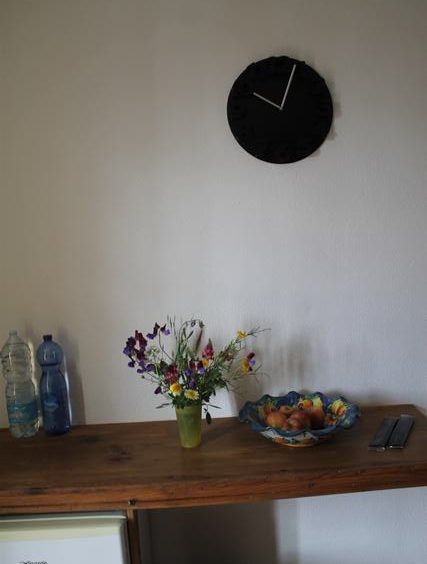 Top floor: 15 sq. meter terrazza, small sitting room (currently art studio) and shower room.