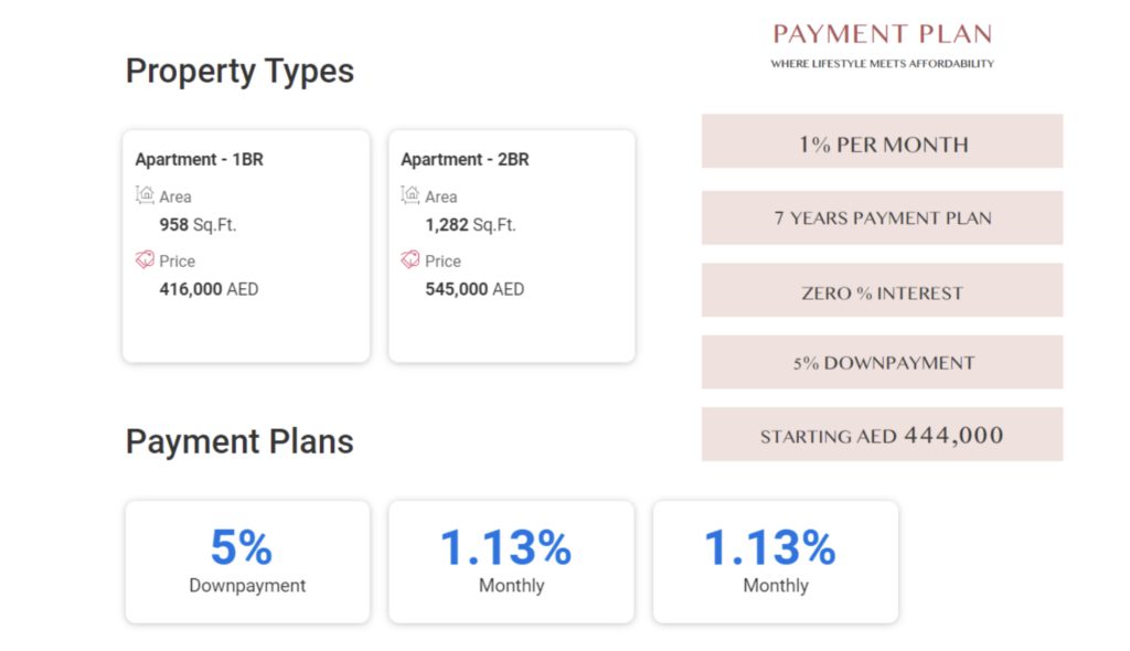 We’re introducing to you fancy 1BR and 2BR apartments at Rose Tower. In UAE, Ajman is the second most well-known area for purchasing apartments and these excellent properties are now for sale with a price starting at just AED 416,000.