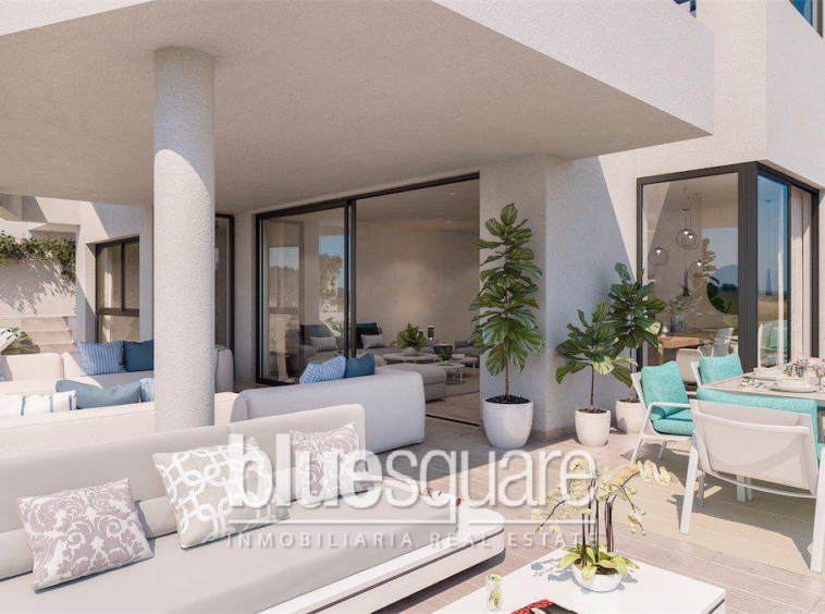 НОВОЕ СТРОИТЕЛЬСТВО: Эти потрясающие новые апартаменты расположены в прекрасном месте, откуда открывается панорамный вид на море и поле для гольфа. Квартиры расположены в 8 разных зданиях прекрасного комплекса с несколькими общими бассейнами и прекрасными садами. Эти апартаменты расположены на втором этаже и состоят из 3 спален, 2 ванных комнат, в главной спальне имеется отдельная ванная комната, а также гардеробная. Также имеется отдельный выход на террасу. Вторая спальня также имеет собственную ванную комнату и дополнительный туалет в квартире. Кроме того, в доме есть собственное подсобное помещение, которое также можно использовать как офис. В большой гостиной есть открытая планировка и полностью оборудованная кухня, отделанная по высоким стандартам. Эта просторная зона выходит на большую террасу, с которой открывается захватывающий вид на море и поле для гольфа. На первом этаже и в пентхаусах имеется собственный небольшой бассейн. К каждой квартире прилагается участок земли с собственным садом в комплексе, а также доступ ко всем удобствам комплекса, бассейнам и подземной парковке.