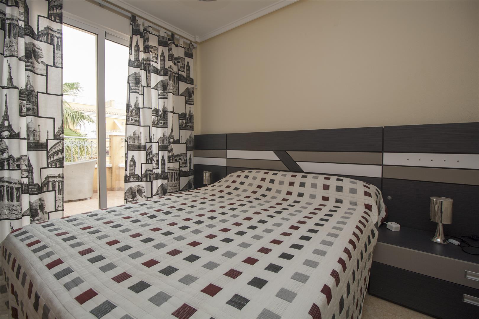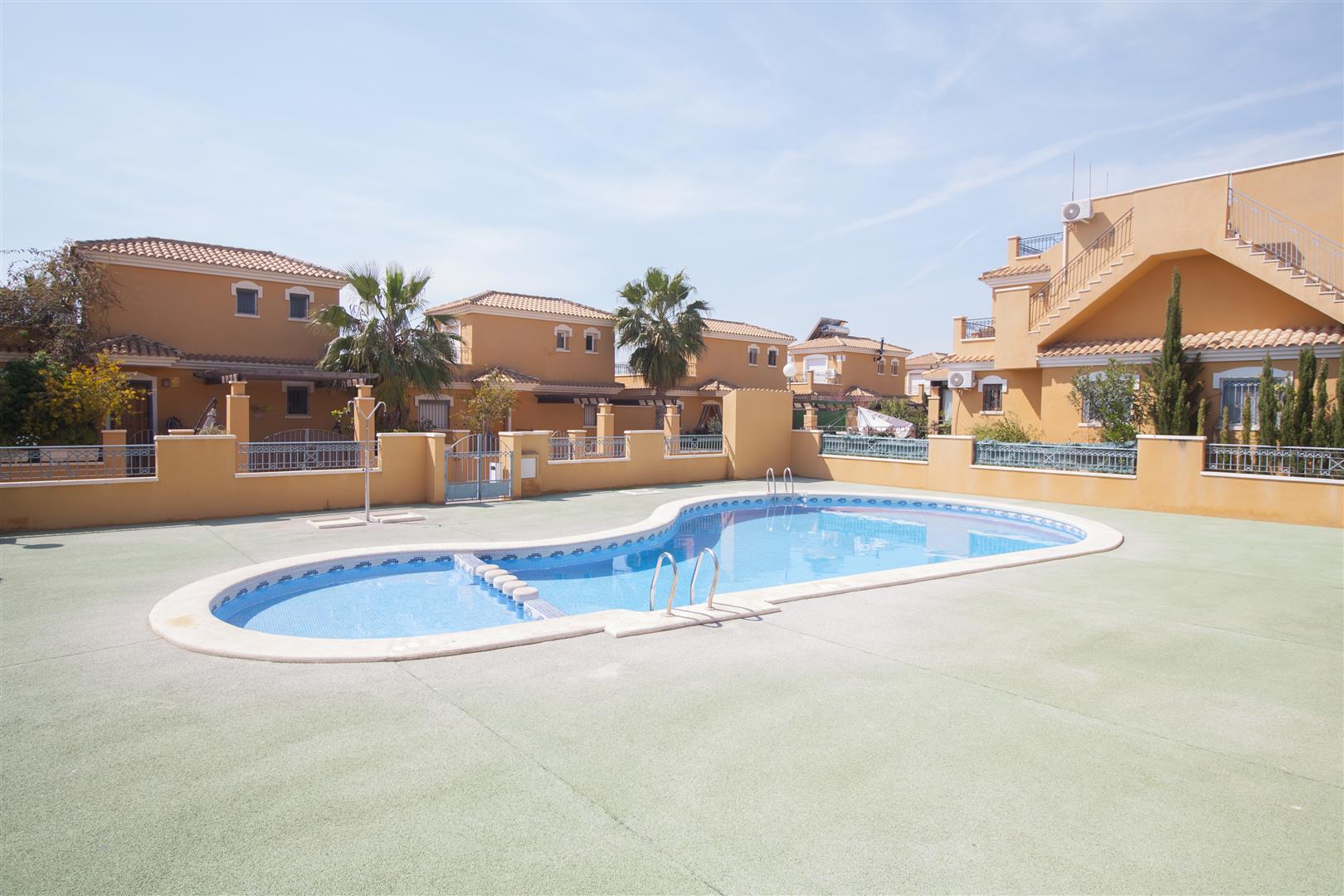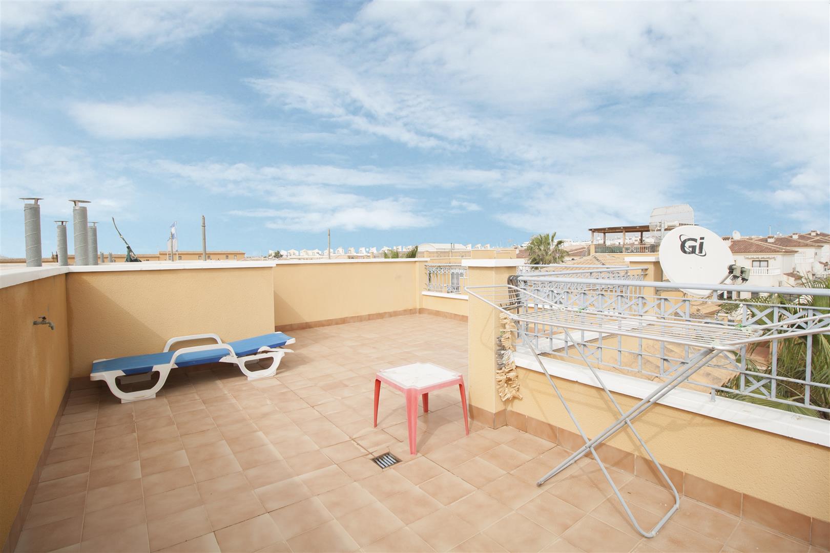 Общая площадь 124 кв.м. Жилая площадь – 74 кв.м. Два этажа. На первом этаже просторный холл с выходом на террасу 10 кв.м, отдельная оборудованная кухня со встроенной бытовой техникой и санузел. На втором этаже 3 спальни, из 2 есть выход на балкон, третья комната немного меньше остальных, полноценный санузел и выход на мансарду с видом на море и окрестности. Кондиционер. Встроенные шкафы. Окна выходят на северо-запад. Общий бассейн.