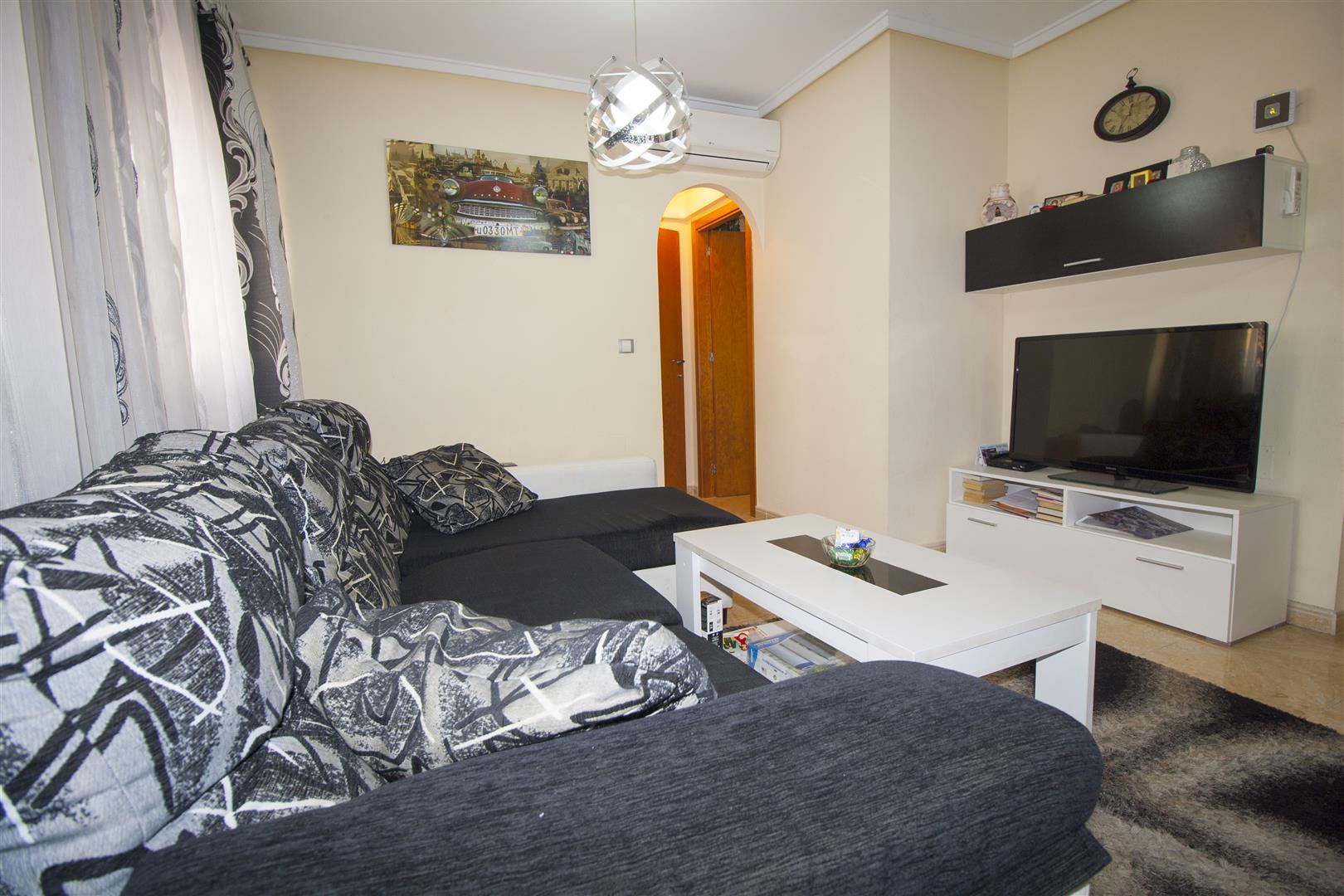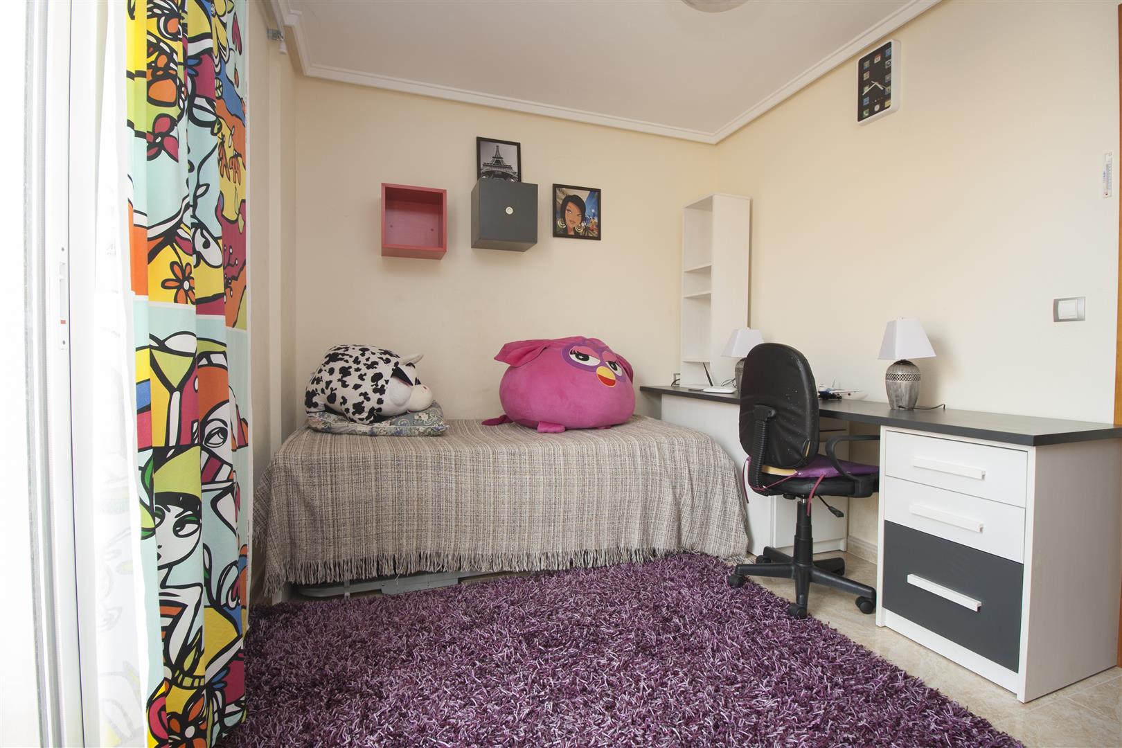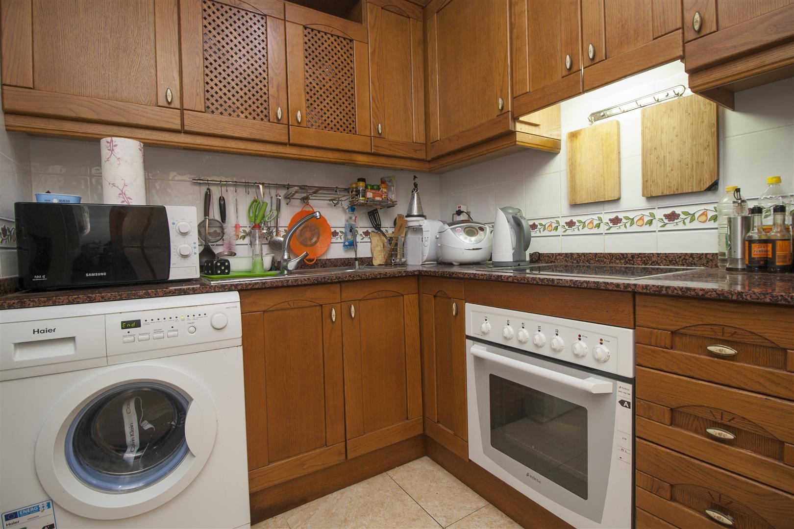 Общая площадь 124 кв.м. Жилая площадь – 74 кв.м. Два этажа. На первом этаже просторный холл с выходом на террасу 10 кв.м, отдельная оборудованная кухня со встроенной бытовой техникой и санузел. На втором этаже 3 спальни, из 2 есть выход на балкон, третья комната немного меньше остальных, полноценный санузел и выход на мансарду с видом на море и окрестности. Кондиционер. Встроенные шкафы. Окна выходят на северо-запад. Общий бассейн.