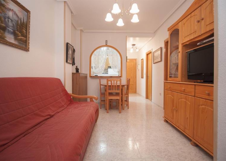 Общая площадь 44 кв.м. Второй этаж. В квартире одна спальня, одна ванная комната, гостиная-столовая, американская кухня, терраса 4 кв.м., встроенные шкафы, кондиционер. Окна выходят на север. Квартира в хорошем состоянии. Общий бассейн.