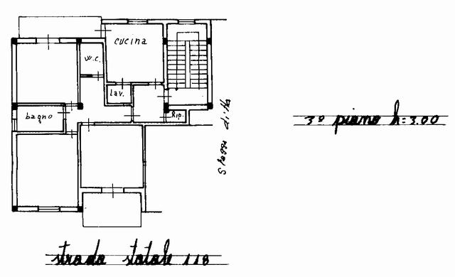 Квартира расположена на улице Виа Национале, Алессандрия делла Рокка, занимает площадь около 110 квадратных метров на третьем этаже. Состоит из трех спален, двух ванных комнат, кладовой, двух коридоров, кухни, двух параномических балконов.