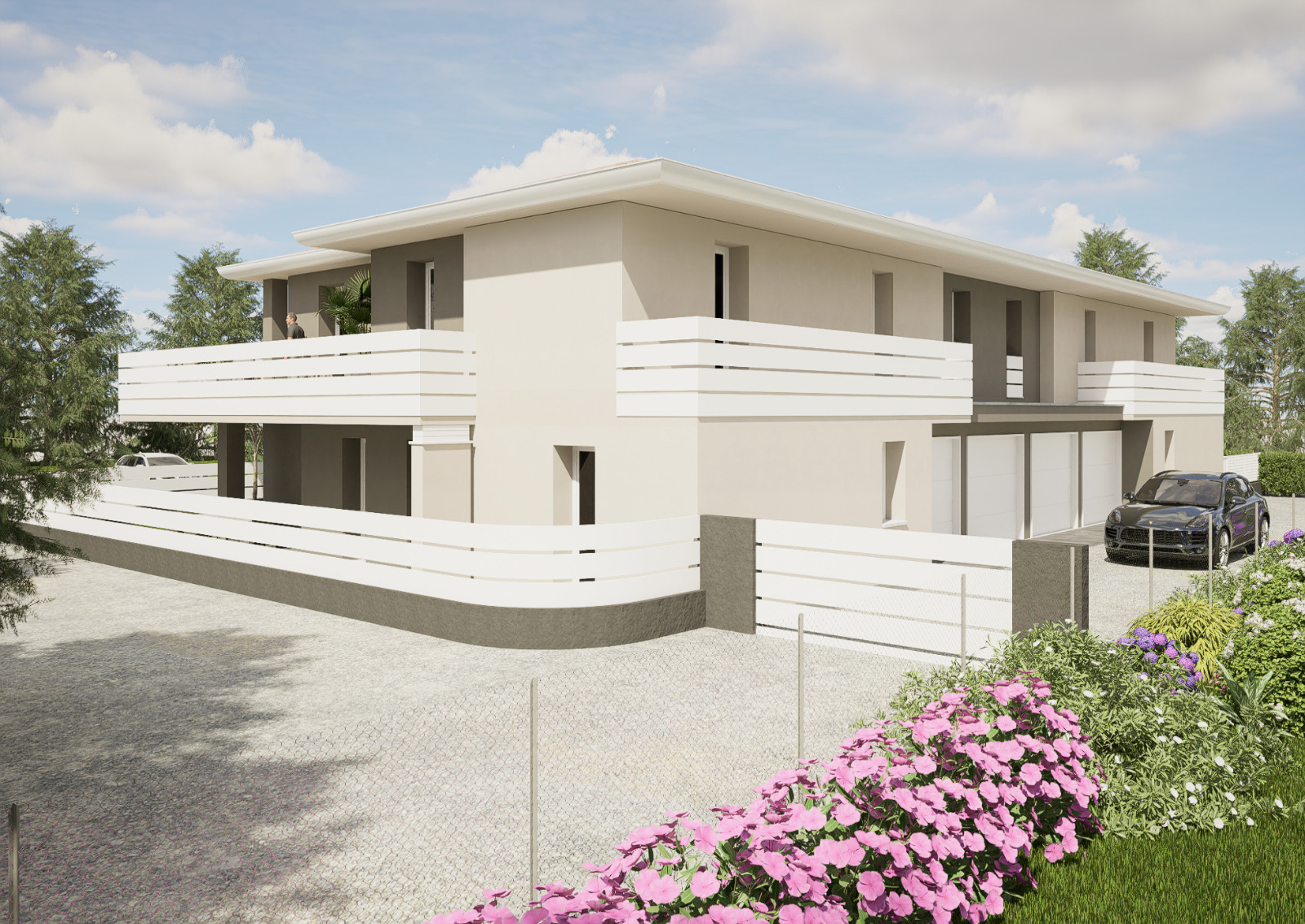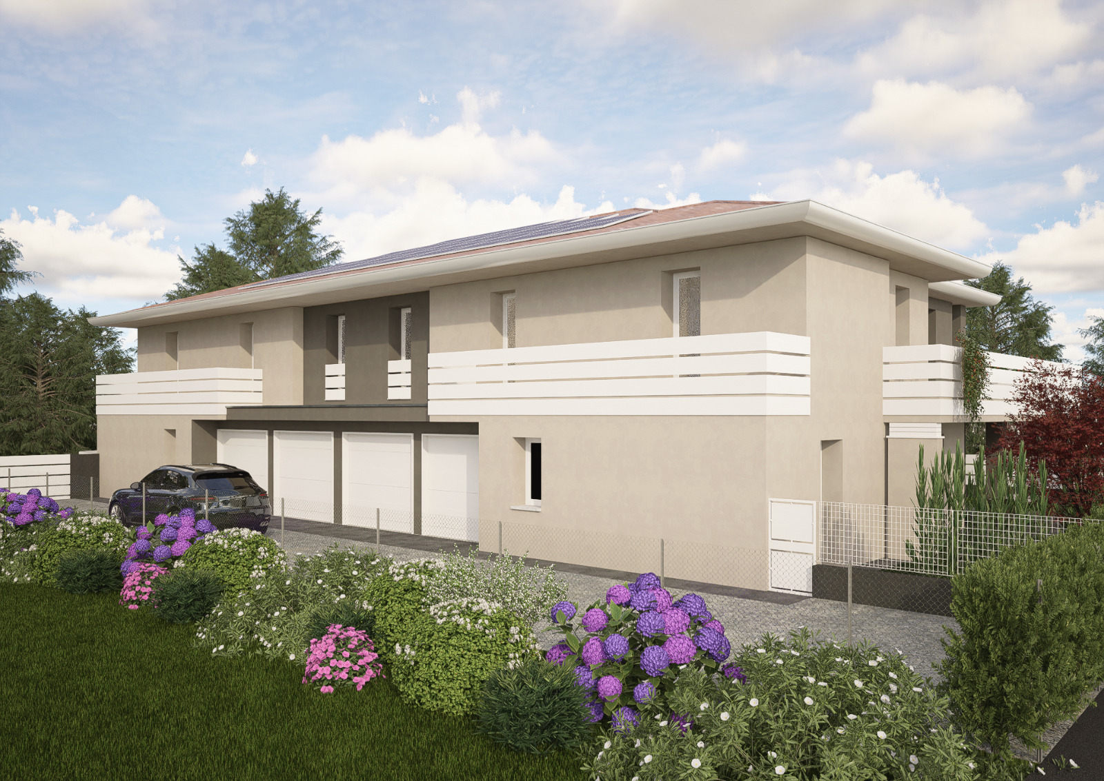 На первых этажах будет собственный частный сад, а на втором этаже, который является предметом предложения, будет большая частично крытая терраса над гостиной и еще один балкон с видом на две спальни.